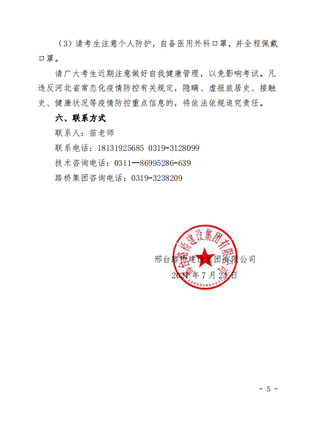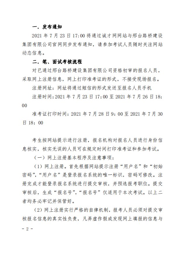 邢臺(tái)路橋建設(shè)集團(tuán)有限公司2021年本科(非本一)層次人員招錄考試通知
