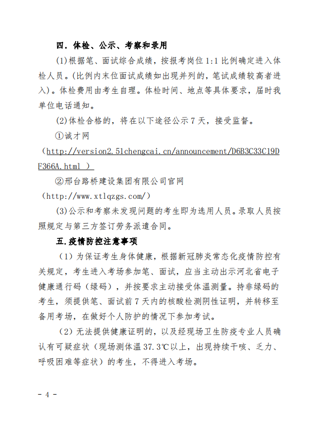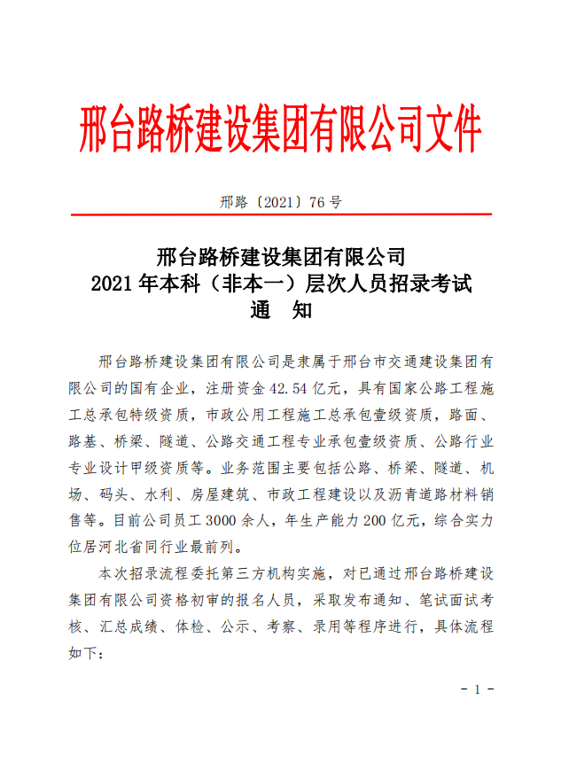 邢臺(tái)路橋建設(shè)集團(tuán)有限公司2021年本科(非本一)層次人員招錄考試通知